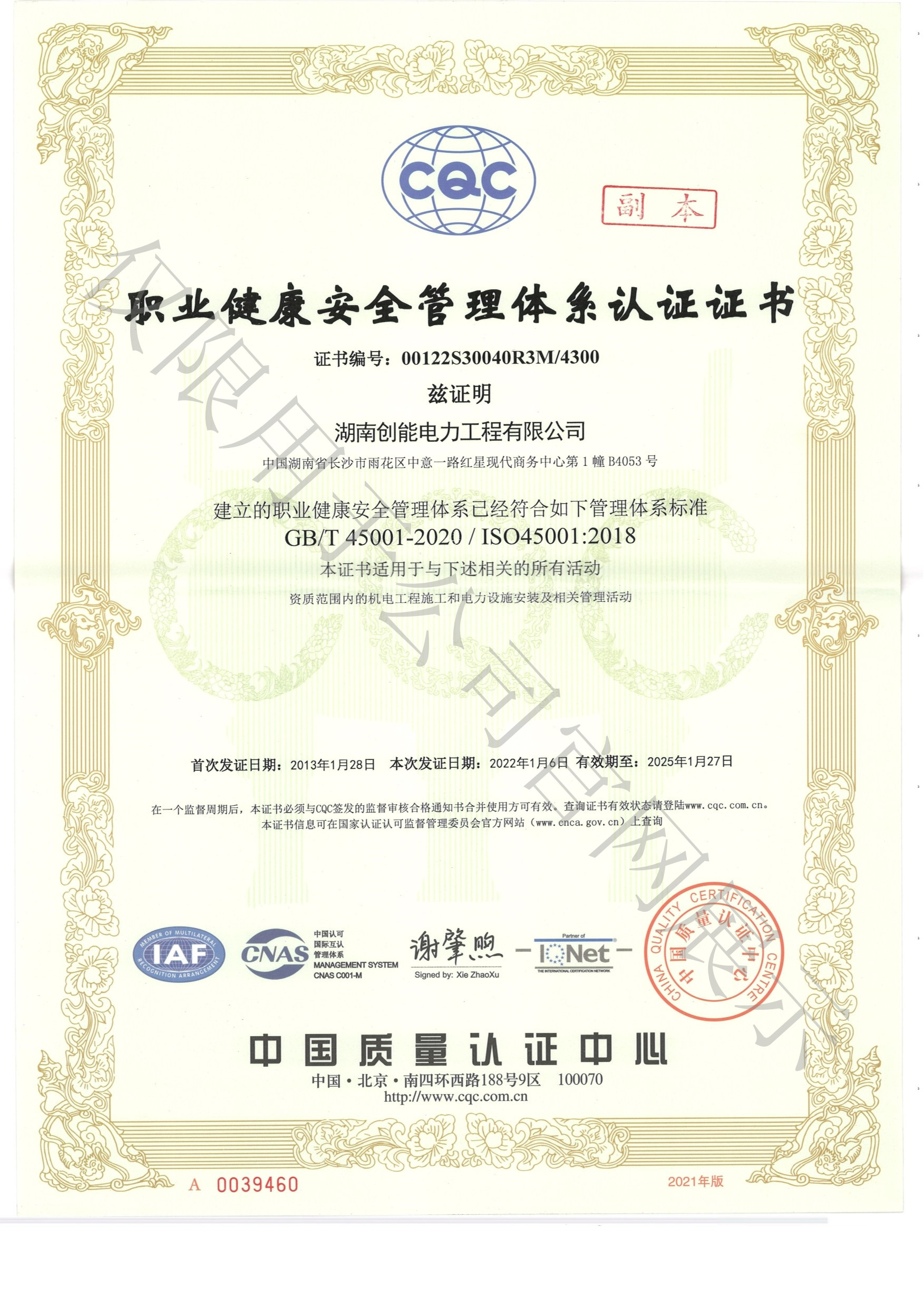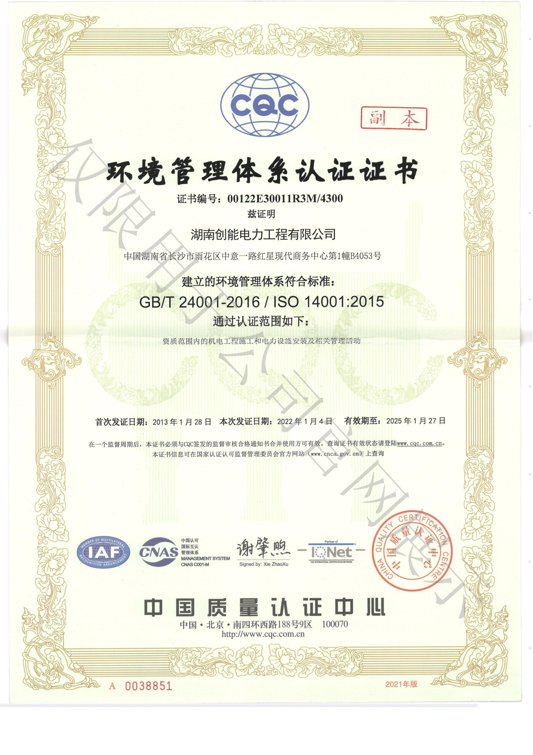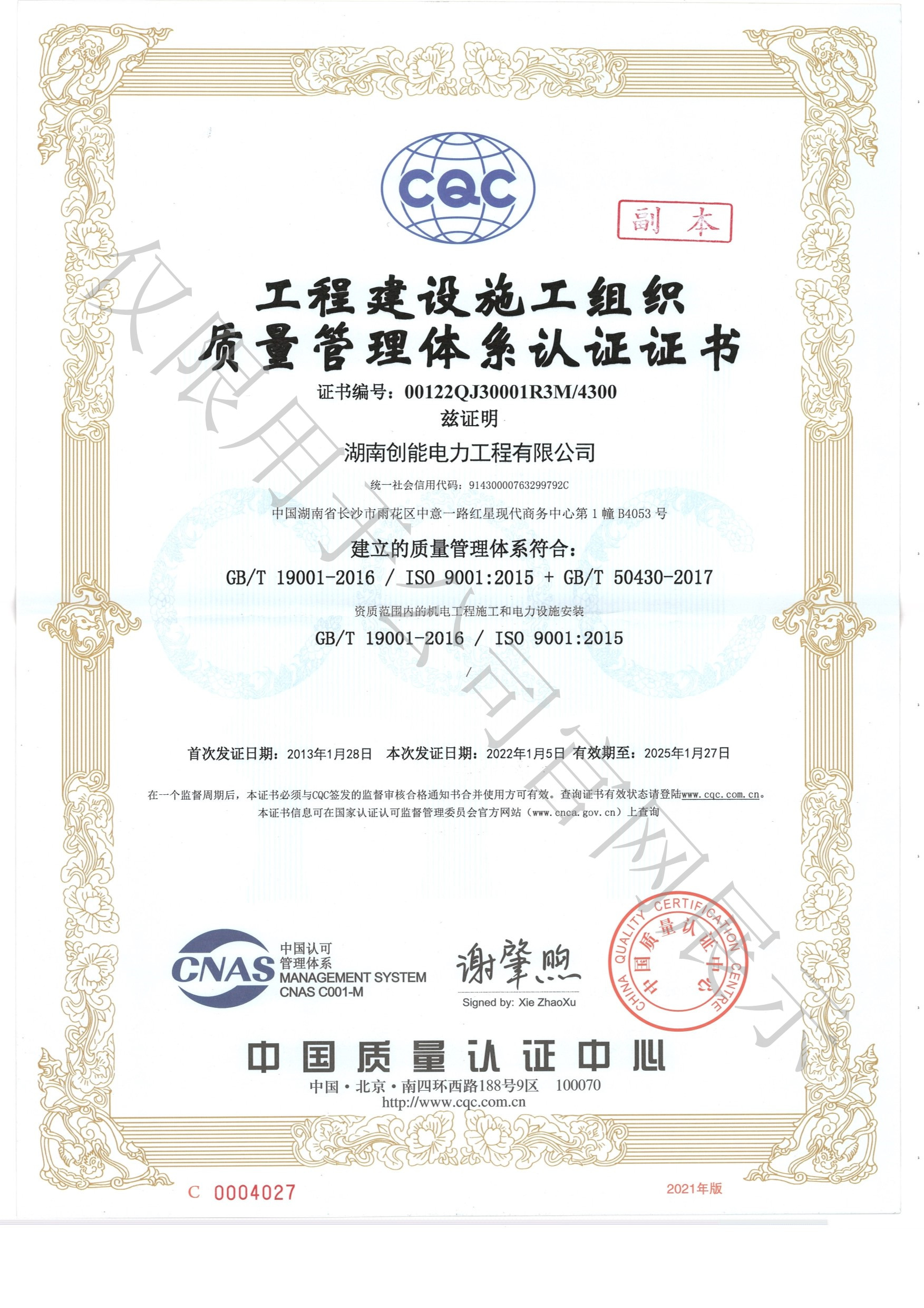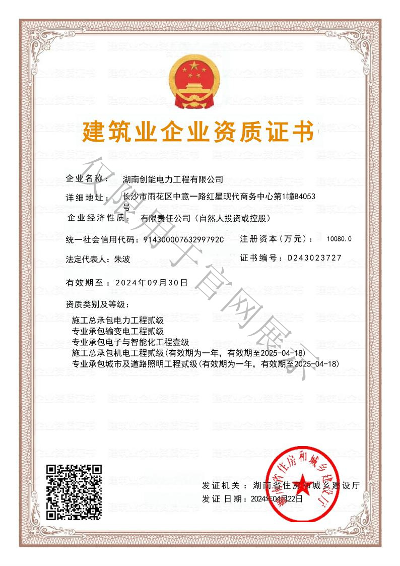施工总承包电力工程贰级、施工总承包机电工程贰级、专业承包输变电工程贰级
