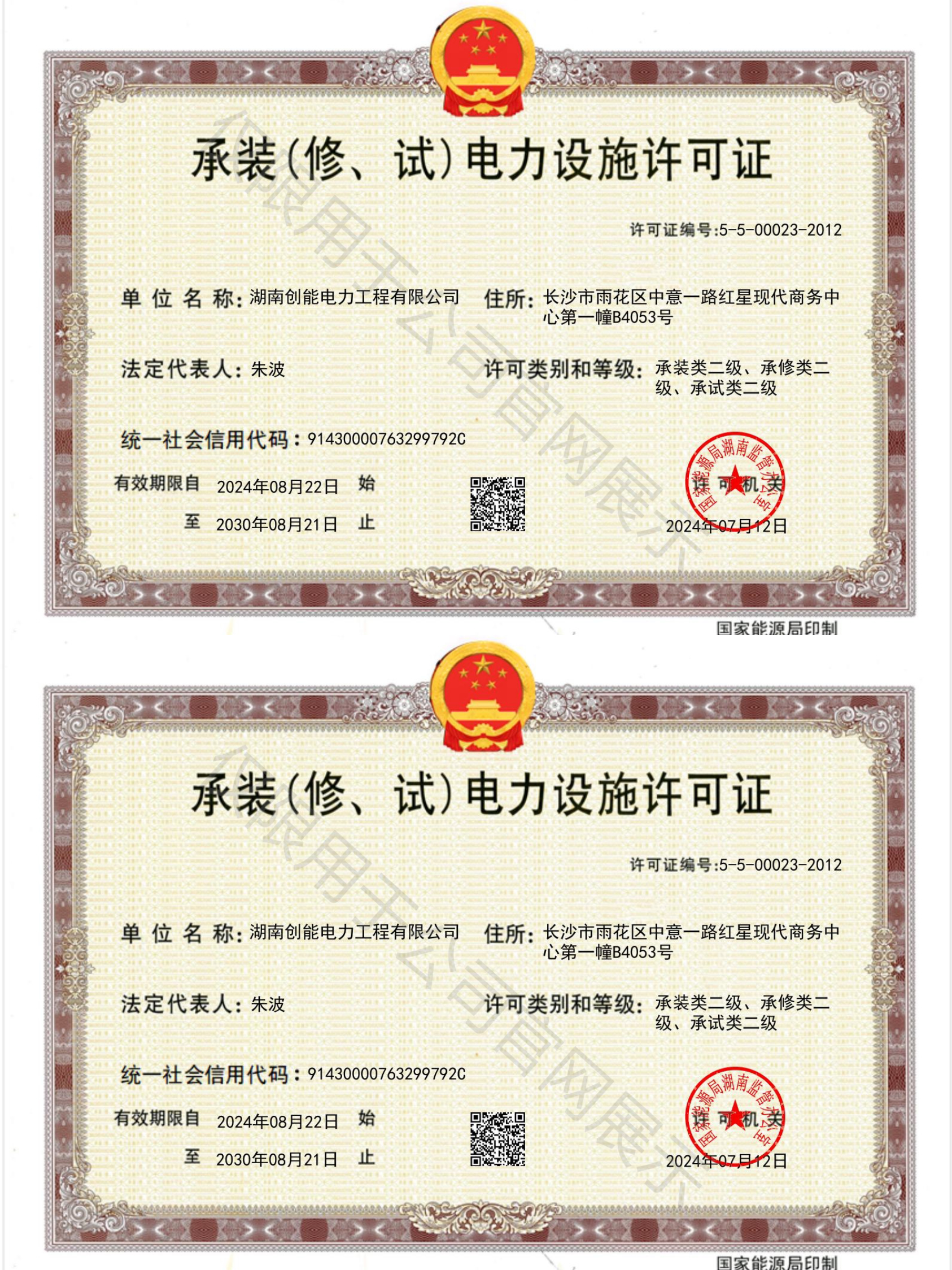电力设施承装类贰级、承修类贰级、承试类贰级