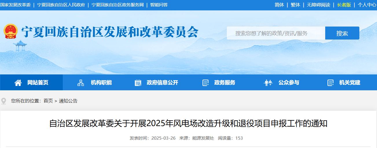 宁夏开展2025年风电场刷新升级和退役项目申报事情
